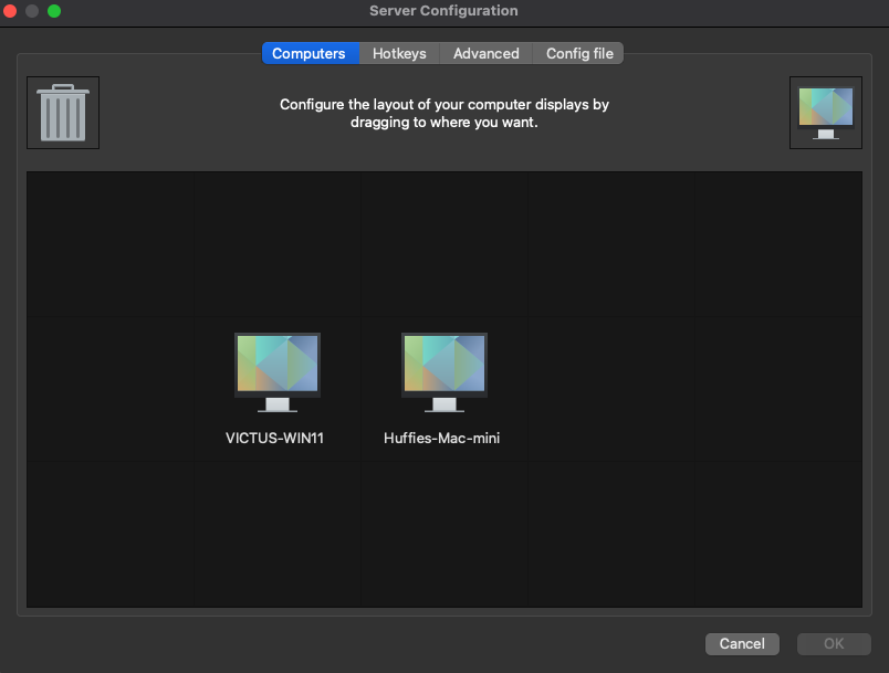 在服务端电脑,点击Configure Server,然后把右上角的电脑,拖一个到你的电脑旁边。屏幕名填写 Ubuntu 中的 Client 下的计算机名。
